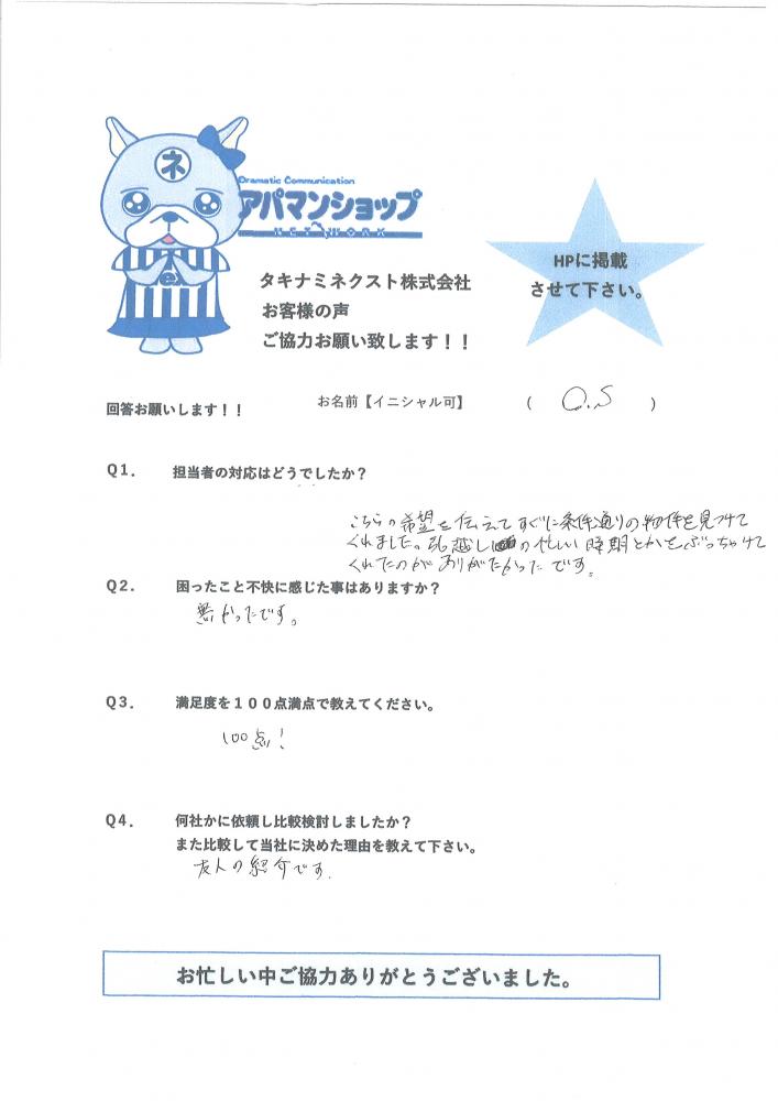 O.S 様 の声 | 小岩の賃貸はアパマンショップ小岩店 タキナミネクスト